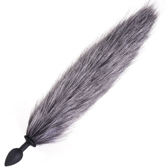 Чёрная анальная втулка с пушистым серым хвостом - отличный аксессуар для того, чтобы примерить на себя роль игривого сексуального питомца.