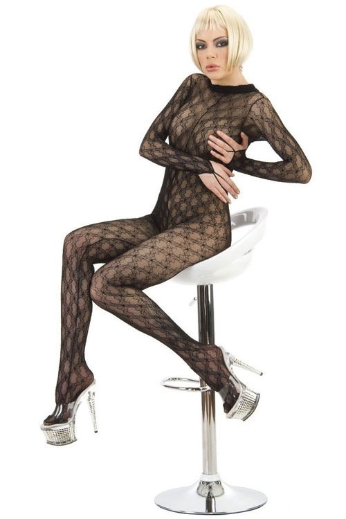 Облегающий кэтсьюит на все тело смотрится максимально соблазнительно. Ажурное плетение, круглый вырез под горло и вырезы в зоне бикини добавляют изюминки наряду.