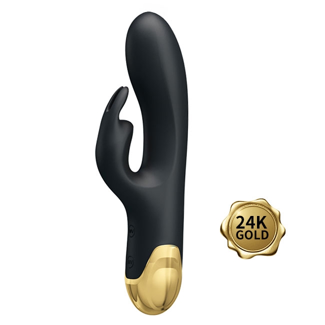 Роскошный вибромассажер-кролик из жидкого силикона и цинкового сплава с золотым покрытием 24-карата!